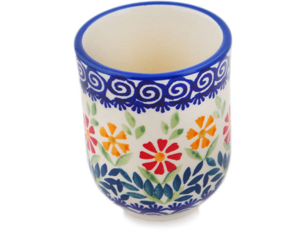 This Polish Pottery Tumbler is handmade and handpainted by the Manufaktura factory in Boleslawiec, Poland. Manufacturer item number H8564Q. It is 3¼" high and measures 2¾" by 2¾". The capacity of this Tumbler is 5.51 oz (brimful) and it weighs 0.5 lbs. It is part of the Wave Of Flowers Collection.