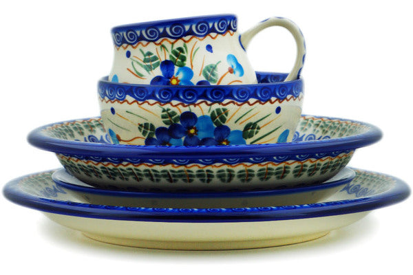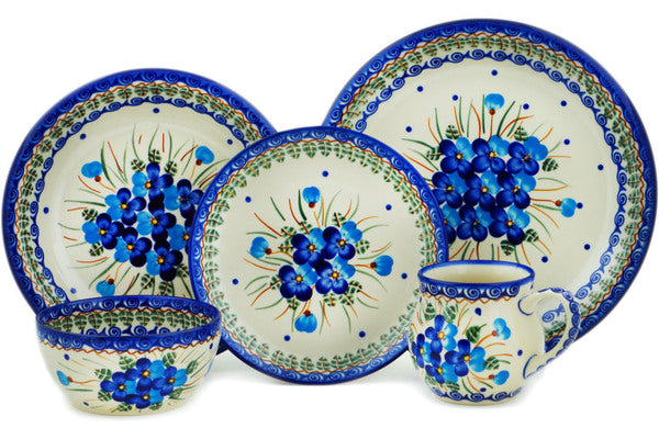 This Polish Pottery Place Setting is handmade and handpainted by the Ceramika Bona factory in Boleslawiec, Poland. Manufacturer item number H9542N. It is 3½" high and measures 10¼" by 10¼". The capacity of this Place Setting is 23.67 oz (brimful) and it weighs 5.6 lbs. It is part of the Blue Pansy Collection.