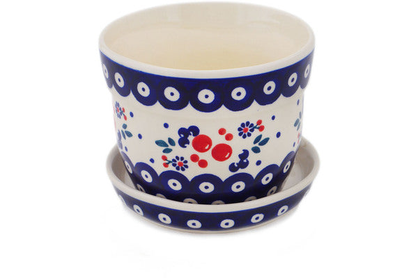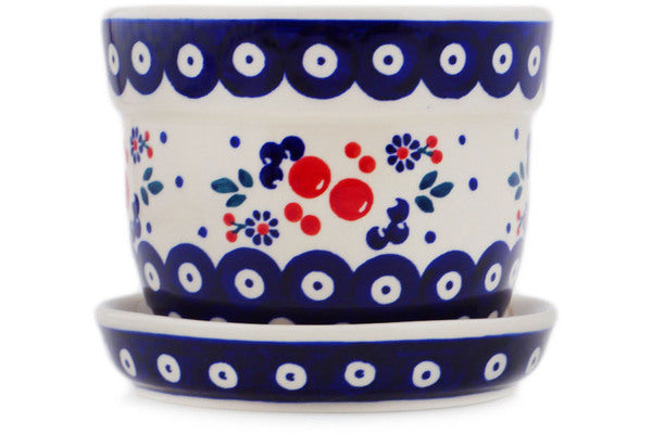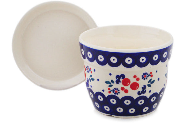 This Polish Pottery Planter is handmade and handpainted by the Manufaktura factory in Boleslawiec, Poland. Manufacturer item number H8297Q. It is 4¼" high and measures 5¼" by 5¼". The weight of this Planter is 1.8 lbs. It is part of the Burst Of Berries Collection.