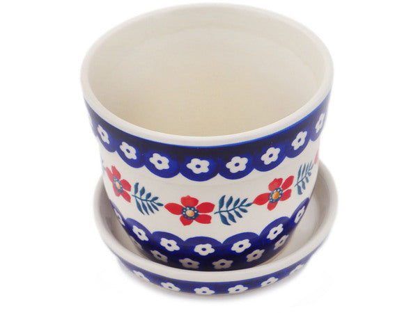This Polish Pottery Planter is handmade and handpainted by the Manufaktura factory in Boleslawiec, Poland. Manufacturer item number H8298Q. It is 4¼" high and measures 5¼" by 5¼". The weight of this Planter is 1.8 lbs. It is part of the Poppies And Ferns Collection.