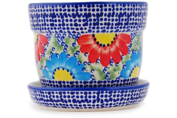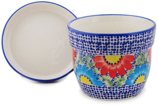 This Polish Pottery Planter is handmade and handpainted by the Manufaktura factory in Boleslawiec, Poland. Manufacturer item number H8305Q. It is 4¼" high and measures 5¼" by 5¼". The weight of this Planter is 1.8 lbs. It is part of the Spotted Garden Collection.