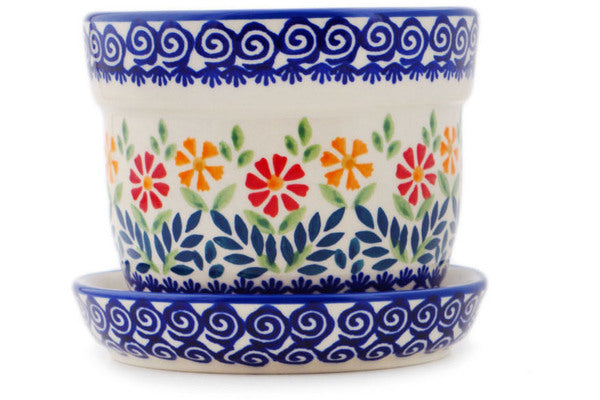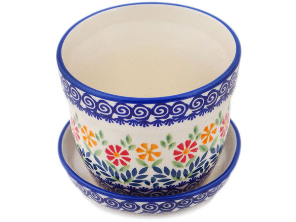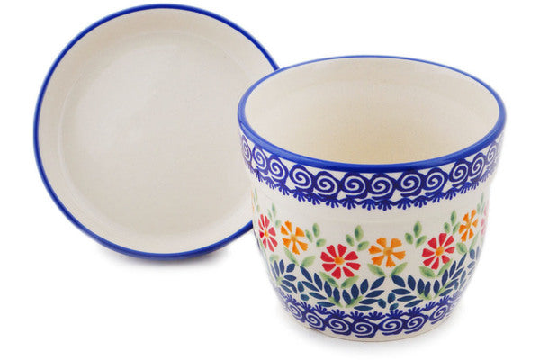 This Polish Pottery Planter is handmade and handpainted by the Manufaktura factory in Boleslawiec, Poland. Manufacturer item number H8299Q. It is 4¼" high and measures 5¼" by 5¼". The weight of this Planter is 1.8 lbs. It is part of the Wave Of Flowers Collection.