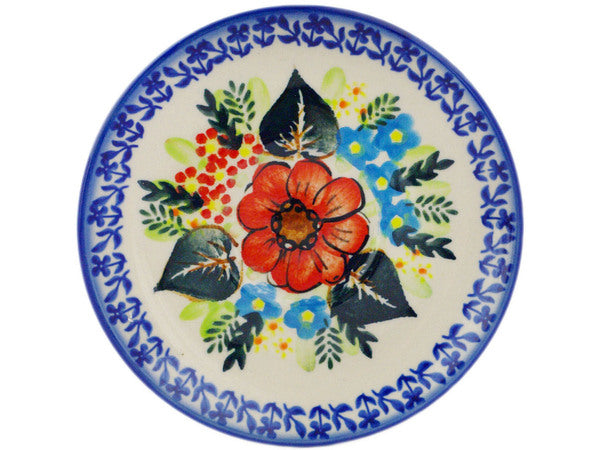 This Polish Pottery Saucer is handmade and handpainted by the Ceramika Bona factory in Boleslawiec, Poland. Manufacturer item number H2154G. It is ¾" high and measures 5½" by 5½". The weight of this Saucer is 0.5 lbs. It is part of the Bold Red Poppies Collection.