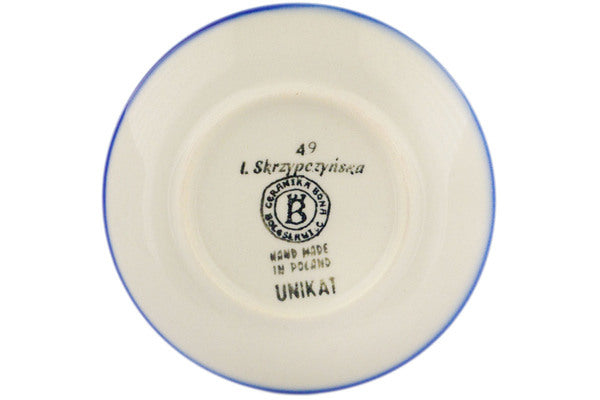 This is a Polish pottery Unikat (Signature) Saucer, which means that it has been hand painted with both sponges and brushes and it is signed by the artist who painted it. Unikat pieces are the most intricate works of art. Larger Unikat items take hours of very careful work to finish.