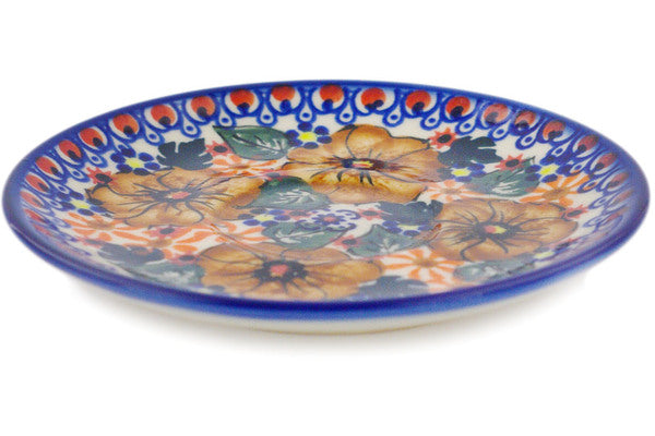 This Polish Pottery Saucer is handmade and handpainted by the Ceramika Bona factory in Boleslawiec, Poland. Manufacturer item number H5710R. It is ¾" high and measures 5½" by 5½". The weight of this Saucer is 0.5 lbs. It is part of the Mauve Poppies Collection.