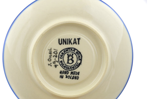 This is a Polish pottery Unikat (Signature) Saucer, which means that it has been hand painted with both sponges and brushes and it is signed by the artist who painted it. Unikat pieces are the most intricate works of art. Larger Unikat items take hours of very careful work to finish.