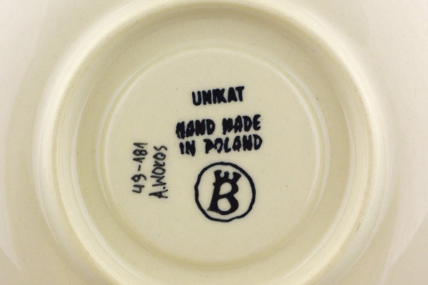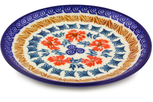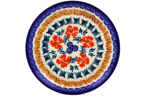 This Polish Pottery Saucer is handmade and handpainted by the Ceramika Bona factory in Boleslawiec, Poland. Manufacturer item number H9885I. It is ¾" high and measures 5½" by 5½". The weight of this Saucer is 0.5 lbs. It is part of the Red Cornflower Collection.