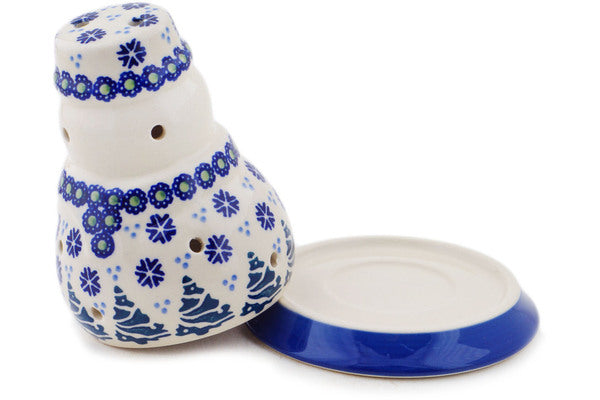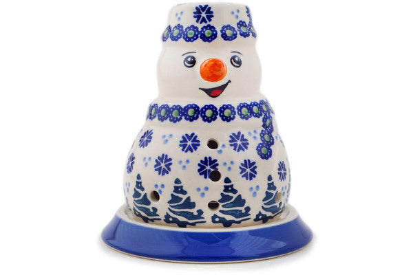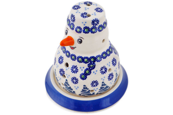 This Polish Pottery Snowman Candle Holder is handmade and handpainted by the Manufaktura factory in Boleslawiec, Poland. Manufacturer item number H8470Q. It is 4¾" high and measures 4¼" by 4¼". The weight of this Snowman Candle Holder is 1.6 lbs. It is part of the Falling Snowflakes Collection.