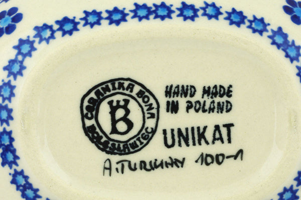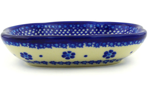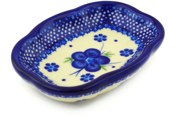 This Polish Pottery Soap Dish is handmade and handpainted by the Ceramika Bona factory in Boleslawiec, Poland. Manufacturer item number H2402F. It is 1¼" high and measures 5¼" by 4". The weight of this Soap Dish is 0.6 lbs. It is part of the Bleu-Belle Fleur Collection.