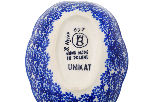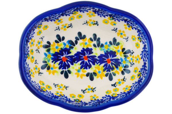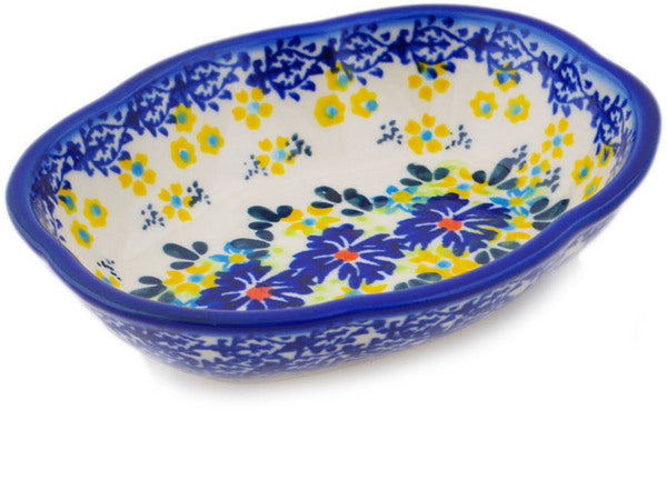 This Polish Pottery Soap Dish is handmade and handpainted by the Ceramika Bona factory in Boleslawiec, Poland. Manufacturer item number H1841R. It is 1½" high and measures 5" by 4¼". The capacity of this Soap Dish is 4.19 oz (brimful) and it weighs 0.4 lbs. It is part of the Cornflower Meadow Collection.