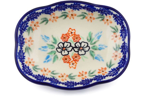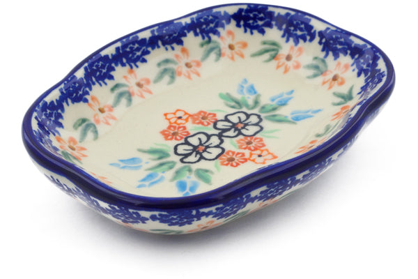This Polish Pottery Soap Dish is handmade and handpainted by the Ceramika Bona factory in Boleslawiec, Poland. Manufacturer item number H0616F. It is 1¼" high and measures 5¼" by 4". The weight of this Soap Dish is 0.6 lbs. It is part of the Fanciful Ladybug Collection.
