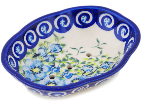 This Polish Pottery Soap Dish is handmade and handpainted by the Ceramika Bona factory in Boleslawiec, Poland. Manufacturer item number H1871R. It is 1¼" high and measures 5" by 4¼". The weight of this Soap Dish is 0.3 lbs. It is part of the Gorgeous Morning Glory Collection.