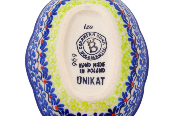 This Polish Pottery Soap Dish is handmade and handpainted by the Ceramika Bona factory in Boleslawiec, Poland. Manufacturer item number H1887R. It is 1½" high and measures 5" by 4¼". The capacity of this Soap Dish is 4.19 oz (brimful) and it weighs 0.4 lbs. It is part of the Metamorphosis Collection.