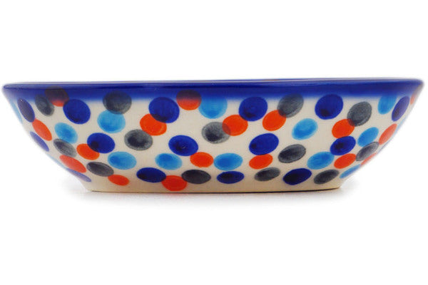 This Polish Pottery Soap Dish is handmade and handpainted by the Ceramika Bona factory in Boleslawiec, Poland. Manufacturer item number H1966R. It is 1½" high and measures 5" by 4¼". The capacity of this Soap Dish is 4.19 oz (brimful) and it weighs 0.4 lbs. It is part of the Polka Dot Frenzy Collection.