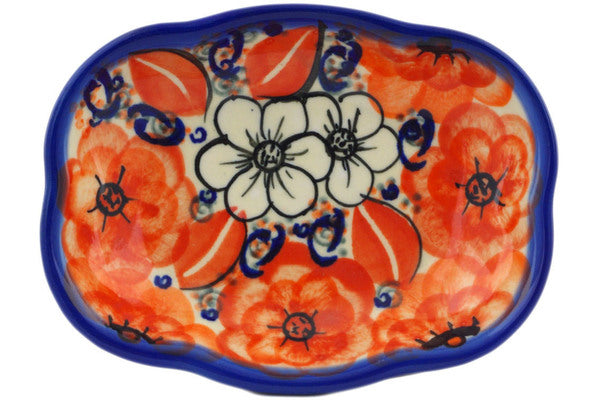This Polish Pottery Soap Dish is handmade and handpainted by the Ceramika Bona factory in Boleslawiec, Poland. Manufacturer item number H0869K. It is 1¼" high and measures 5¼" by 4". The weight of this Soap Dish is 0.6 lbs. It is part of the Poppy Passion Collection.