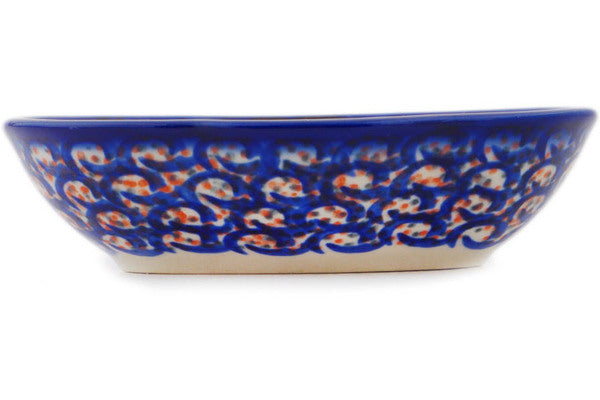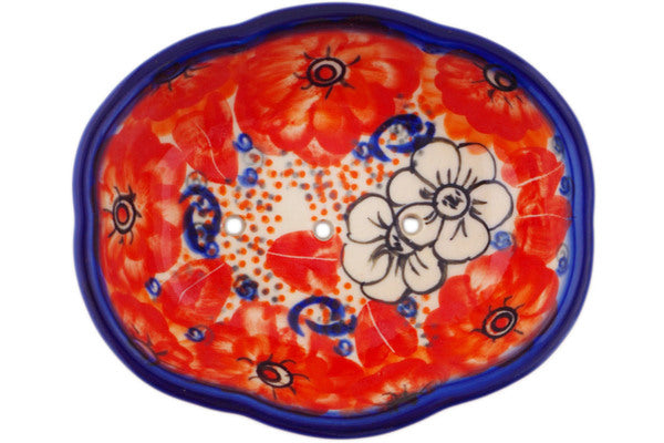 This Polish Pottery Soap Dish is handmade and handpainted by the Ceramika Bona factory in Boleslawiec, Poland. Manufacturer item number H7171Q. It is 1¼" high and measures 5" by 4¼". The weight of this Soap Dish is 0.3 lbs. It is part of the Poppy Passion Collection.