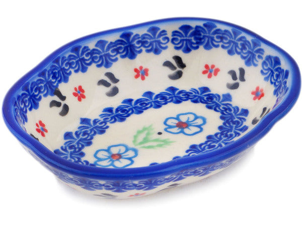 This Polish Pottery Soap Dish is handmade and handpainted by the Ceramika Bona factory in Boleslawiec, Poland. Manufacturer item number H1965R. It is 1½" high and measures 5" by 4¼". The capacity of this Soap Dish is 4.19 oz (brimful) and it weighs 0.4 lbs. It is part of the Sweet Day Collection.