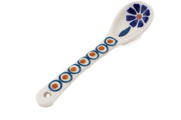 This Polish Pottery Spoon is handmade and handpainted by the Manufaktura factory in Boleslawiec, Poland. Manufacturer item number H7411P. It is ½" high and measures 5" by 1". The weight of this Spoon is 0.1 lbs. It is part of the Peacock Collection.
