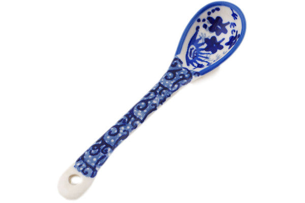 This Polish Pottery Spoon is handmade and handpainted by the Manufaktura factory in Boleslawiec, Poland. Manufacturer item number H8396P. It is ½" high and measures 5" by 1". The weight of this Spoon is 0.1 lbs. It is part of the Periwinkle Sweetness Collection.