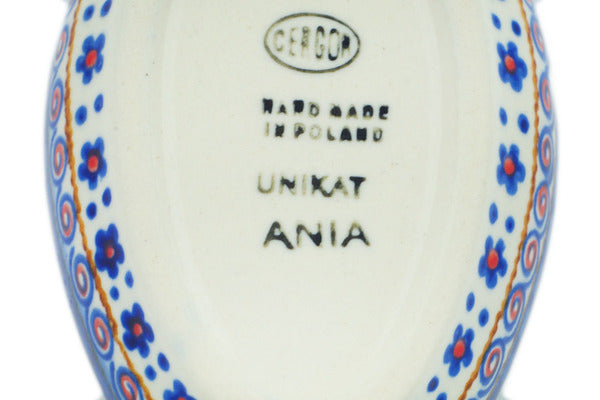 This is a Polish pottery Unikat (Signature) Spoon Rest, which means that it has been hand painted with both sponges and brushes and it is signed by the artist who painted it. Unikat pieces are the most intricate works of art. Larger Unikat items take hours of very careful work to finish.