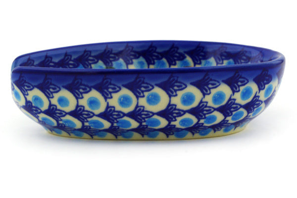 This is a Polish pottery Unikat (Signature) Spoon Rest, which means that it has been hand painted with both sponges and brushes and it is signed by the artist who painted it. Unikat pieces are the most intricate works of art. Larger Unikat items take hours of very careful work to finish.