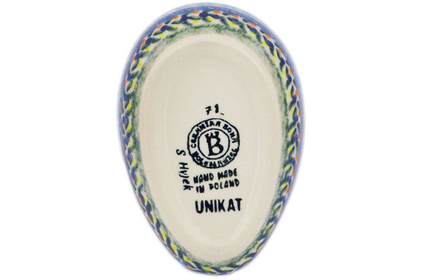 This is a Polish pottery Unikat (Signature) Spoon Rest, which means that it has been hand painted with both sponges and brushes and it is signed by the artist who painted it. Unikat pieces are the most intricate works of art. Larger Unikat items take hours of very careful work to finish.