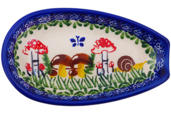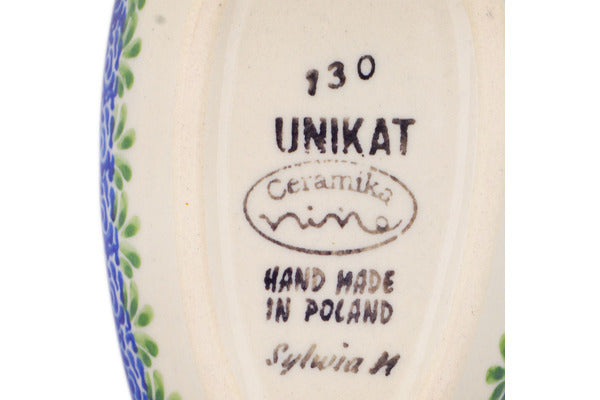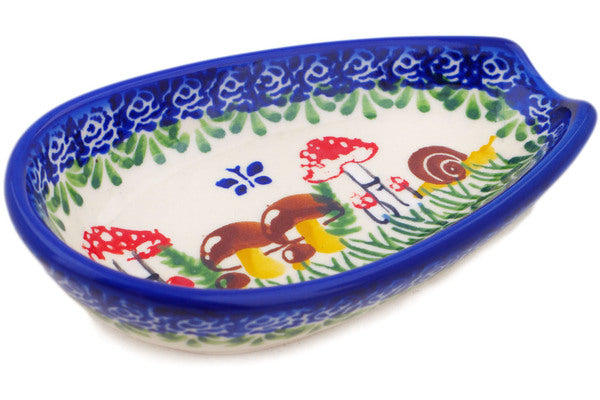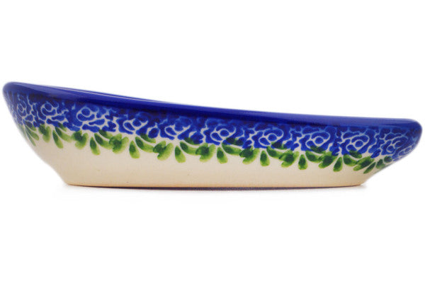 This Polish Pottery Spoon Rest is handmade and handpainted by the Ceramika Nina factory in Boleslawiec, Poland. Manufacturer item number H3248P. It is 1½" high and measures 5½" by 3¼". The weight of this Spoon Rest is 0.3 lbs. It is part of the Gardens In Poland Collection.