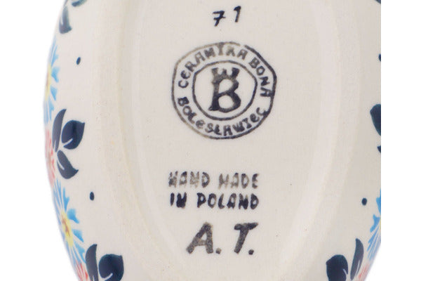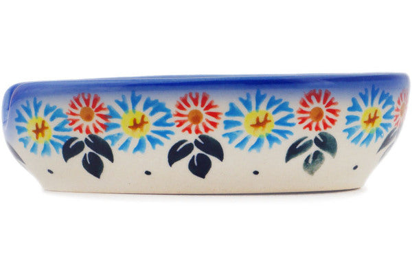 This Polish Pottery Spoon Rest is handmade and handpainted by the Ceramika Bona factory in Boleslawiec, Poland. Manufacturer item number H2005R. It is 1½" high and measures 5" by 3½". The capacity of this Spoon Rest is 5.07 oz (brimful) and it weighs 0.5 lbs. It is part of the Long-stemmed Beauties Collection.