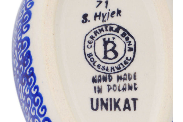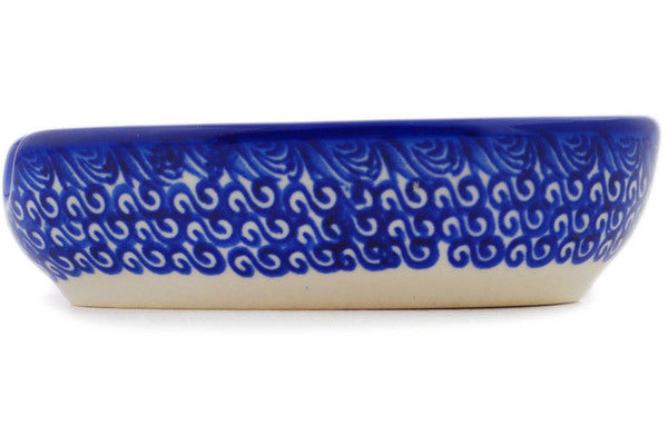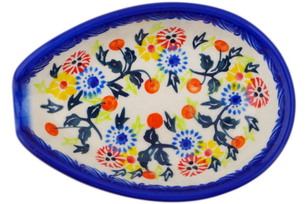 This Polish Pottery Spoon Rest is handmade and handpainted by the Ceramika Bona factory in Boleslawiec, Poland. Manufacturer item number H2250R. It is 1½" high and measures 5" by 3½". The capacity of this Spoon Rest is 5.07 oz (brimful) and it weighs 0.5 lbs. It is part of the Pastel Spring Wreath Collection.