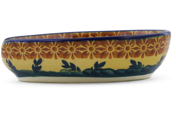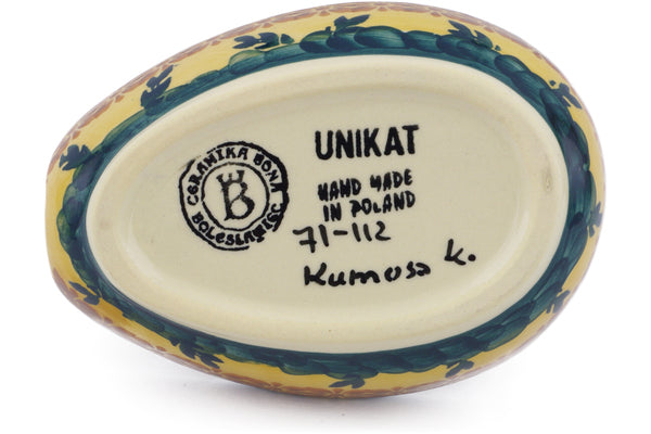 This is a Polish pottery Unikat (Signature) Spoon Rest, which means that it has been hand painted with both sponges and brushes and it is signed by the artist who painted it. Unikat pieces are the most intricate works of art. Larger Unikat items take hours of very careful work to finish.
