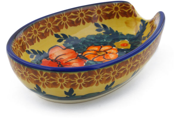 This Polish Pottery Spoon Rest is handmade and handpainted by the Ceramika Bona factory in Boleslawiec, Poland. Manufacturer item number H0738F. It is 1½" high and measures 5" by 3½". The capacity of this Spoon Rest is 5.07 oz (brimful) and it weighs 0.5 lbs. It is part of the Poppy Love Collection.