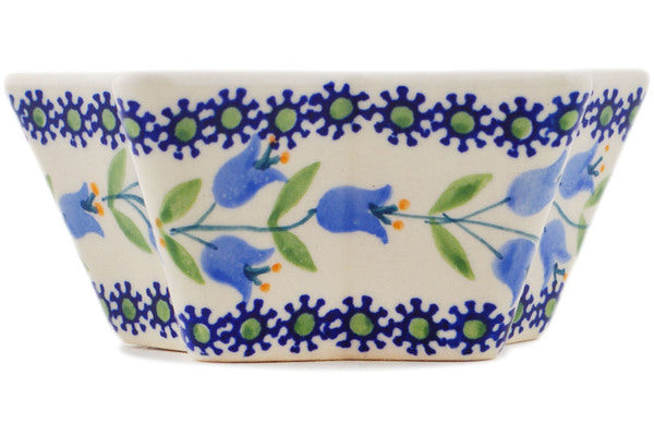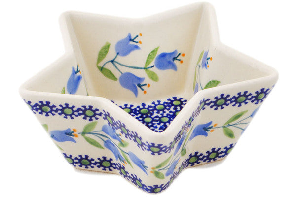 This Polish Pottery Star Shaped Bowl is handmade and handpainted by the Manufaktura factory in Boleslawiec, Poland. Manufacturer item number H7352P. It is 2¾" high and measures 5¼" by 5¼". The capacity of this Star Shaped Bowl is 6.36 oz (brimful) and it weighs 0.5 lbs. It is part of the Sweet Dreams Collection.