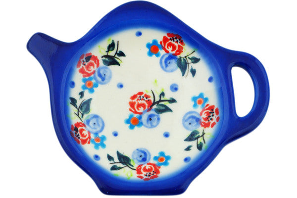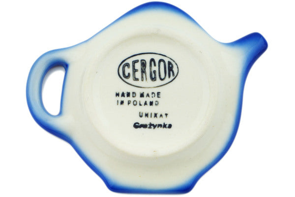 This Polish Pottery Tea Bag or Lemon Plate is handmade and handpainted by the Cergor factory in Boleslawiec, Poland. Manufacturer item number H8378N. It is ¾" high and measures 4¾" by 3¾". The weight of this Tea Bag or Lemon Plate is 0.3 lbs. It is part of the Dancing Flowers Collection.
