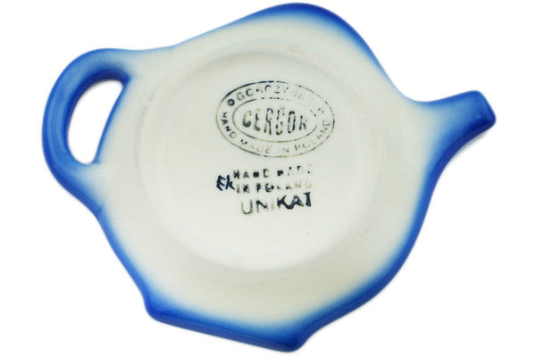 This is a Polish pottery Unikat (Signature) Tea Bag or Lemon Plate, which means that it has been hand painted with both sponges and brushes and it is signed by the artist who painted it. Unikat pieces are the most intricate works of art. Larger Unikat items take hours of very careful work to finish.
