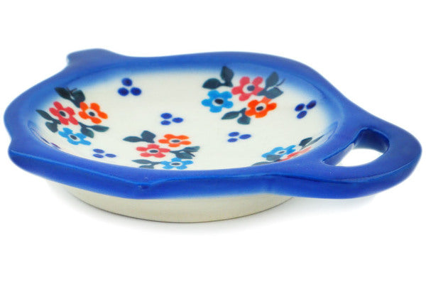 This Polish Pottery Tea Bag or Lemon Plate is handmade and handpainted by the Cergor factory in Boleslawiec, Poland. Manufacturer item number H8379N. It is ¾" high and measures 4¾" by 3¾". The weight of this Tea Bag or Lemon Plate is 0.3 lbs. It is part of the Sweet Clusters Collection.