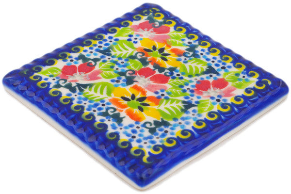 This Polish Pottery Tile is handmade and handpainted by the Dalia factory in Boleslawiec, Poland. Manufacturer item number H0515R. It is ¼" high and measures 5¼" by 3¾". The weight of this Tile is 0.4 lbs. It is part of the Spring Is Coming Collection.
