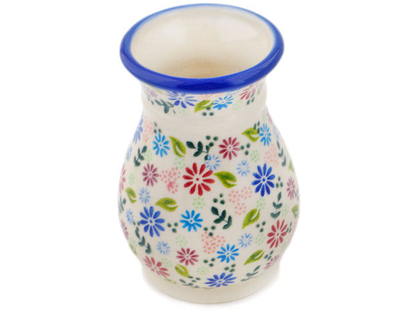 This Polish Pottery Vase is handmade and handpainted by the Stara Fabryka factory in Boleslawiec, Poland. Manufacturer item number H4240R. It is 5" high and measures 3½" by 3½". The weight of this Vase is 0.7 lbs. It is part of the Gerbera Garden Collection.
