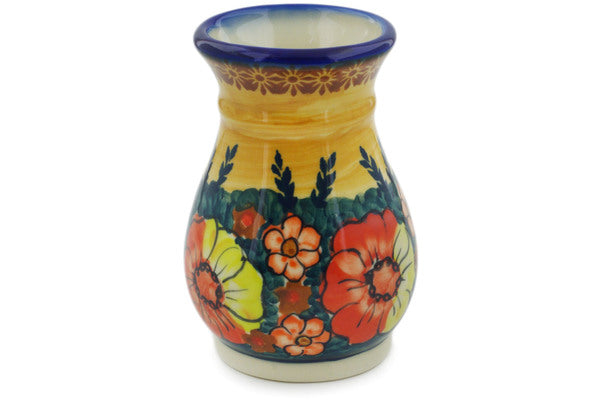 This Polish Pottery Vase is handmade and handpainted by the Ceramika Bona factory in Boleslawiec, Poland. Manufacturer item number H5991K. It is 5" high and measures 3½" by 3½". The capacity of this Vase is 11.97 oz (brimful) and it weighs 0.9 lbs. It is part of the Poppy Love Collection.