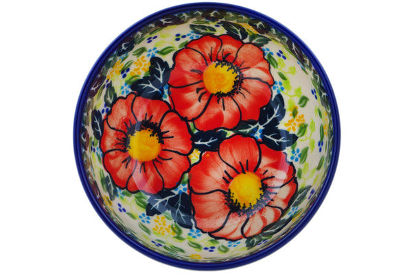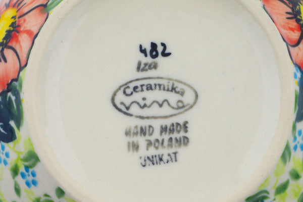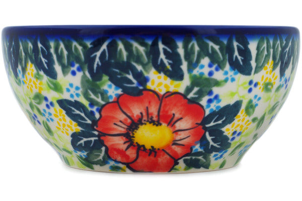 This Polish Pottery Bowl is handmade and handpainted by the Ceramika Nina factory in Boleslawiec, Poland. Manufacturer item number H0198P. It is 2½" high and measures 5¼" by 5¼". The capacity of this Bowl is 16.23 oz (brimful) and it weighs 0.7 lbs. It is part of the Bloom Tales Collection.