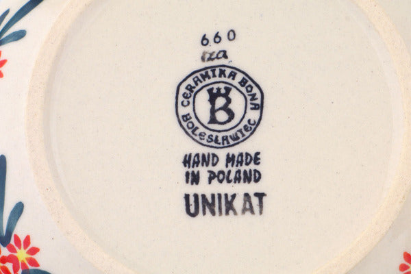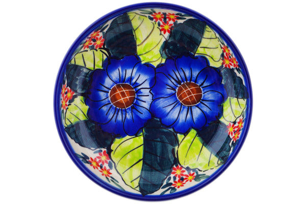 This Polish Pottery Bowl is handmade and handpainted by the Ceramika Bona factory in Boleslawiec, Poland. Manufacturer item number H3994Q. It is 1¼" high and measures 6¼" by 6¼". The capacity of this Bowl is 10.62 oz (brimful) and it weighs 0.7 lbs. It is part of the Blue Bouquet Collection.