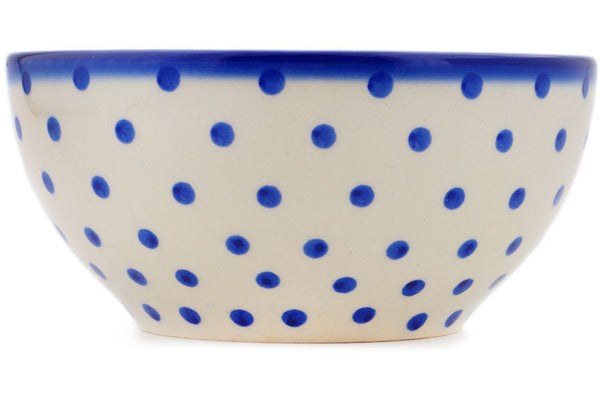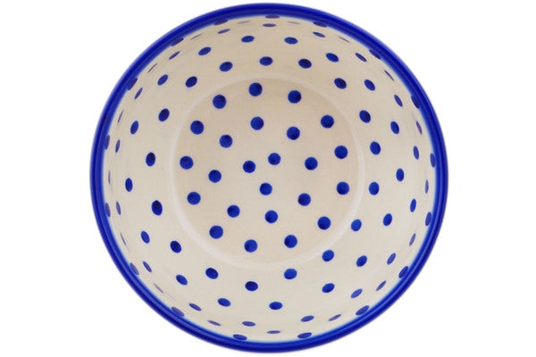 This Polish Pottery Bowl is handmade and handpainted by the Ceramika Bona factory in Boleslawiec, Poland. Manufacturer item number H9755Q. It is 3¼" high and measures 6¼" by 6¼". The capacity of this Bowl is 25.19 oz (brimful) and it weighs 1.1 lbs. It is part of the Blue Polka Dot Collection.