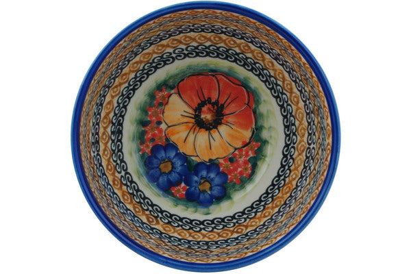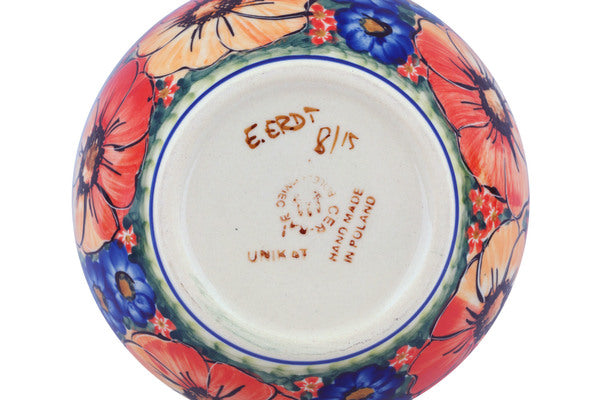 This Polish Pottery Bowl is handmade and handpainted by the Cer-Raf factory in Boleslawiec, Poland. Manufacturer item number H5491F. It is 3" high and measures 6¼" by 6¼". The capacity of this Bowl is 27.05 oz (brimful) and it weighs 1.2 lbs. It is part of the Bright Beauty Collection.