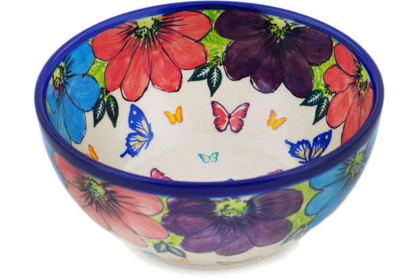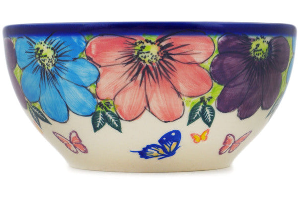 This Polish Pottery Bowl is handmade and handpainted by the Dalia factory in Boleslawiec, Poland. Manufacturer item number H9070P. It is 3" high and measures 6¼" by 6¼". The capacity of this Bowl is 23.20 oz (brimful) and it weighs 1.2 lbs. It is part of the Bundles Of Spring Collection.