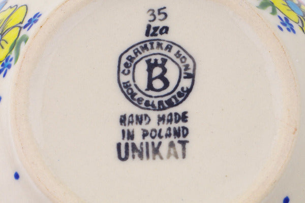 This is a Polish pottery Unikat (Signature) Bowl, which means that it has been hand painted with both sponges and brushes and it is signed by the artist who painted it. Unikat pieces are the most intricate works of art. Larger Unikat items take hours of very careful work to finish.