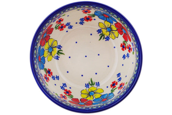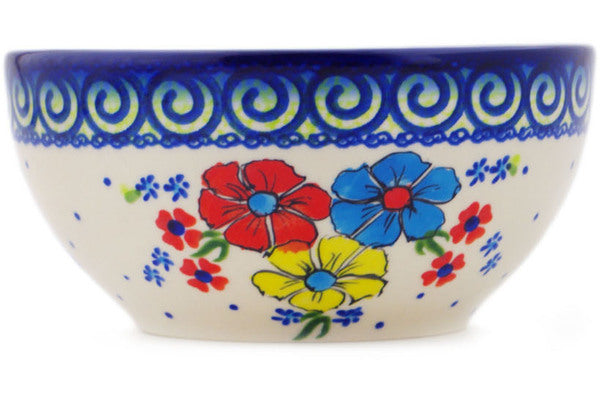 This Polish Pottery Bowl is handmade and handpainted by the Ceramika Bona factory in Boleslawiec, Poland. Manufacturer item number H2144R. It is 3¼" high and measures 6¼" by 6¼". The capacity of this Bowl is 25.19 oz (brimful) and it weighs 1.1 lbs. It is part of the Country Three Collection.
