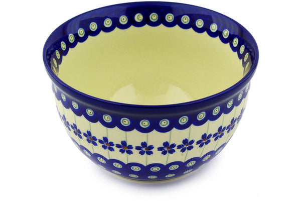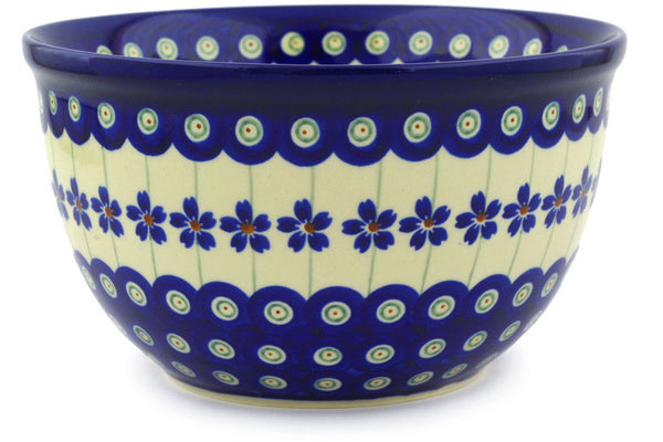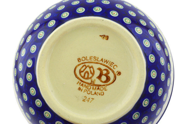 This Polish Pottery Bowl is handmade and handpainted by the Zaklady Ceramiczne factory in Boleslawiec, Poland. Manufacturer item number H0992A. It is 3½" high and measures 6¼" by 6¼". The capacity of this Bowl is 37.20 oz (brimful) and it weighs 1.4 lbs. It is part of the Flowering Peacock Collection.