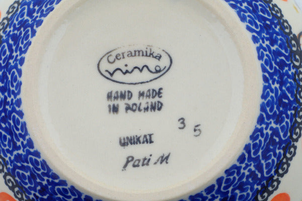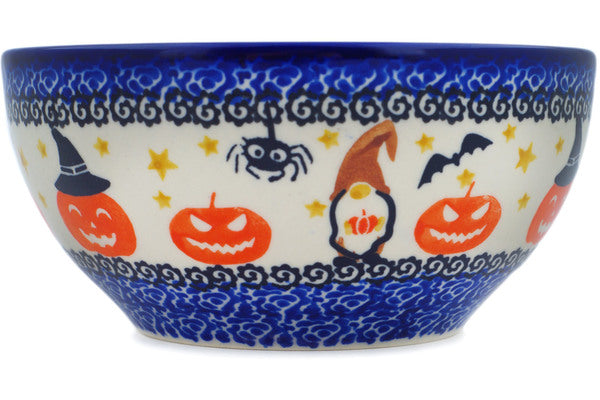 This Polish Pottery Bowl is handmade and handpainted by the Ceramika Nina factory in Boleslawiec, Poland. Manufacturer item number H1438P. It is 3¼" high and measures 6¼" by 6¼". The capacity of this Bowl is 25.19 oz (brimful) and it weighs 1.1 lbs. It is part of the Harvest Haunt Collection.