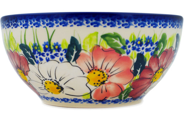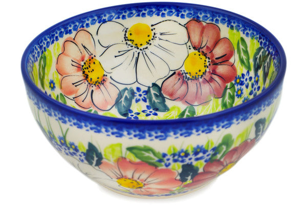 This Polish Pottery Bowl is handmade and handpainted by the Ceramika Nina factory in Boleslawiec, Poland. Manufacturer item number H1642P. It is 3¼" high and measures 6¼" by 6¼". The capacity of this Bowl is 25.19 oz (brimful) and it weighs 1.1 lbs. It is part of the Maroon Blossoms Collection.