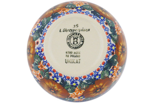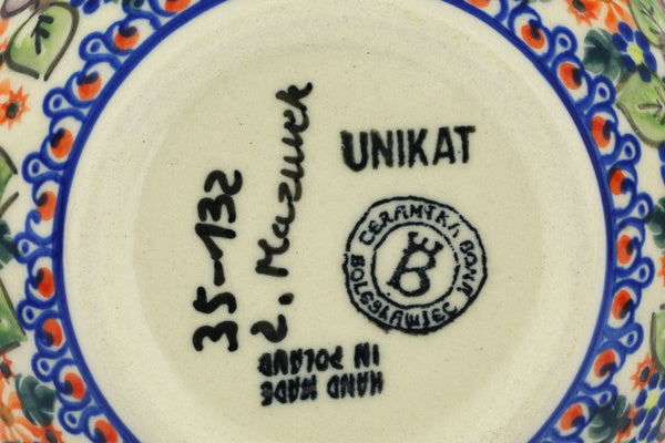 This is a Polish pottery Unikat (Signature) Bowl, which means that it has been hand painted with both sponges and brushes and it is signed by the artist who painted it. Unikat pieces are the most intricate works of art. Larger Unikat items take hours of very careful work to finish.