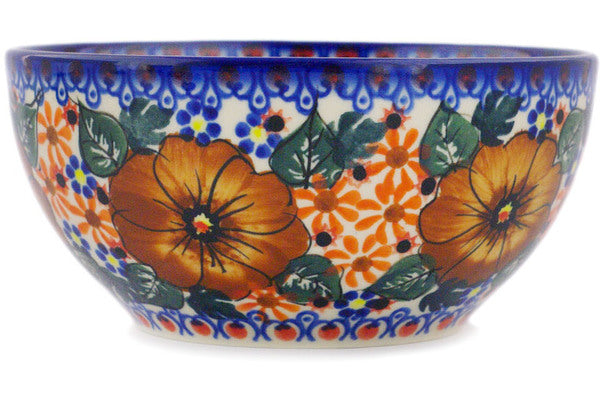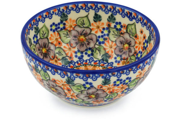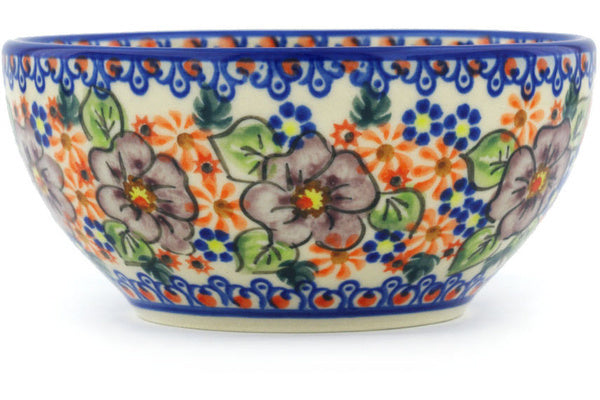 This Polish Pottery Bowl is handmade and handpainted by the Ceramika Bona factory in Boleslawiec, Poland. Manufacturer item number H0474H. It is 3¼" high and measures 6¼" by 6¼". The capacity of this Bowl is 25.19 oz (brimful) and it weighs 1.1 lbs. It is part of the Mauve Poppies Collection.